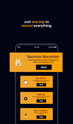 Background Video Recorder App that turns your simple device into a multitasking device, enabling one to record a video in background while using your device for other purposes such as scrolling on any social media platforms, while recording, continue recording when screen off. This Background Video Recorder records videos in the background while using your phone normally.