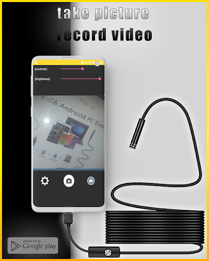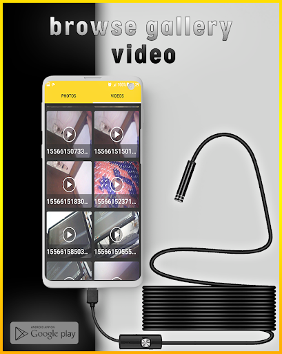 the endoscope app for android - endoscope camera open your external Borescope by USB otg and read it the endoscope app need to use micro just to record video with sounds and need to use the gallery to write and read it pictures and videos