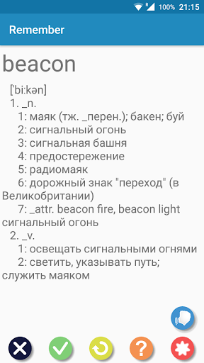 this word. Depending on your decision the word will be shown to you sooner or later again. And you will refresh your memory until you decide you remember this word.