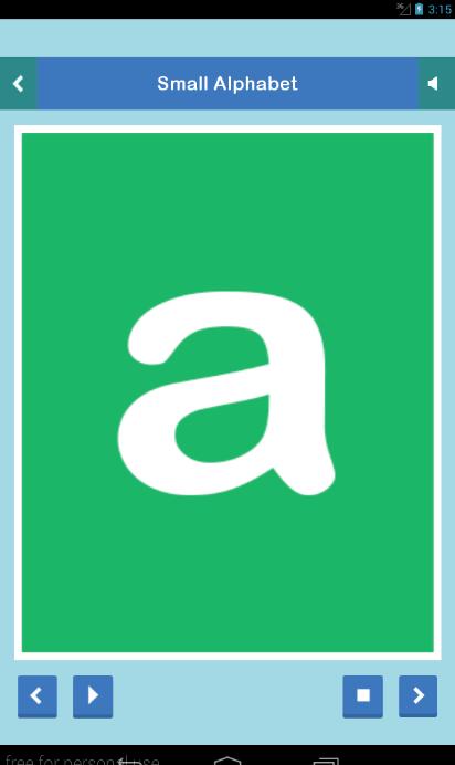 * شما می توانید "Previous" را فشار دهید تا از الفبای به یکی از قبلی بروید، تصاویر آن را مشاهده کنید و گوش دادن به تلفن های موبایل خود را فشار دهید.