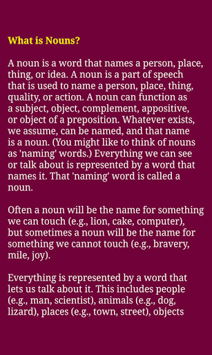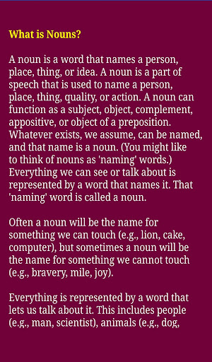 English is one of the most widely spoken languages in the world so it is not surprising that so many people want to learn how to speak English. This application contains grammar rules with suitable and easy examples which will make you learn easily in your mobile as it works without internet connection. You can practice it anytime, anywhere. Here we make it easy for you to learn the English Grammar. In this app, we categorize the Grammar into various topics and each topic contains finest examples to understand easily. This is part-I. We will update part-II very soon. So grab the app in your android mobile and make smartest yourself to impress your friends, near and dear ones by improving your English grammar.