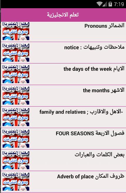 إضافة الى ذلك يحتوي البرنامج على العديد من الدروس وذلك عن طريق ترجمة عربي الانجليزية بدون انترنت مما يجعلكم قادرين على الفهم السريع لهاته اللغة.