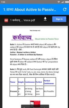 Active voice and passive voice notes for all competitive exams liks ssc cgl, ssc CHSL, Banking , police jobs and other government jobs in Hindi with example and practical. In this android application you find the basic rules of changing voice of sentence. In most English sentences with an action verb, the subject performs the action denoted by the verb. These examples show that the subject is doing the verb's action. Because the subject does or "acts upon" the verb in such sentences, the sentences are said to be in the active voice.