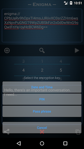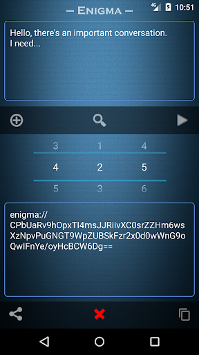 The Enigma application can be used to encrypt data of value only in key mode "Code word", it is much more difficult to find a key in this case than when the key consists of three digits.
