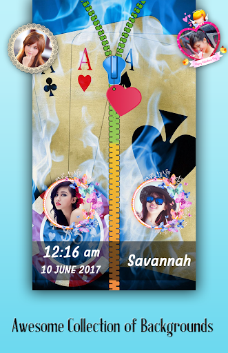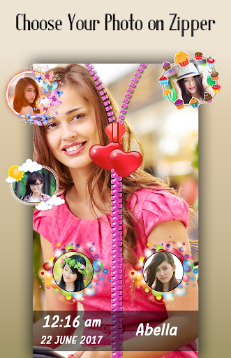 Best part of zipper lock screen is you can set couple photo on lock screen with awesome and creative objets. Even write your name on zipper lock screen. you can use it as couple zipper lock screen