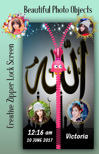 A simple zipper, you just have to drag it downwards to unzip the pretty Allah and your phone will be unlocked. Its a quick, simple and easy way to unlock your phone. Allah zipper Screen Lock includes cutest high definition graphics with user friendly interface. This zipper lock app doesn't require any password or pin code to unlock your smartphone.