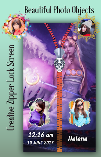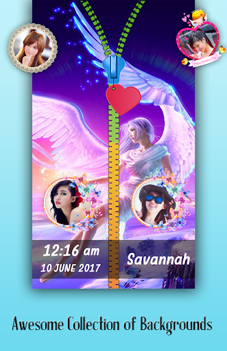 Best part of zipper lock screen is you can set couple photo on lock screen with awesome and creative objets. Even write your name on zipper lock screen. you can use it as couple zipper lock screen
