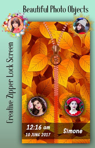 Best part of zipper lock screen is you can set couple photo on lock screen with awesome and creative objets. Even write your name on zipper lock screen. you can use it as couple zipper lock screen