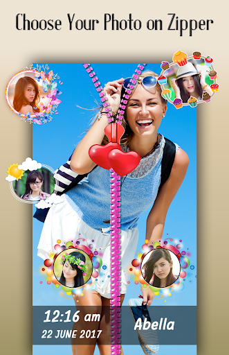 Best part of zipper lock screen is you can set couple photo on lock screen with awesome and creative objets. Even write your name on zipper lock screen. you can use it as couple zipper lock screen