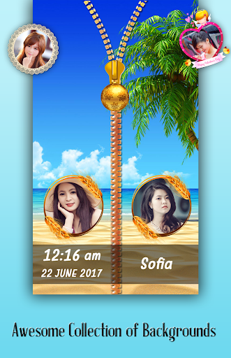 Best part of zipper lock screen is you can set couple photo on lock screen with awesome and creative objets. Even write your name on zipper lock screen. you can use it as couple zipper lock screen