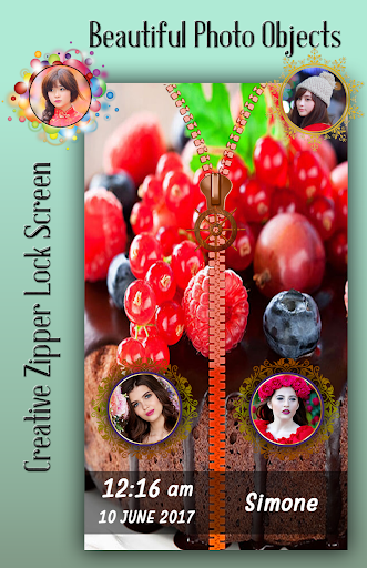 A simple zipper, you just have to drag it downwards to unzip the pretty cake and your phone will be unlocked. Its a quick, simple and easy way to unlock your phone. cake zipper Screen Lock includes cutest high definition graphics with user friendly interface. This zipper lock app doesn't require any password or pin code to unlock your smartphone.