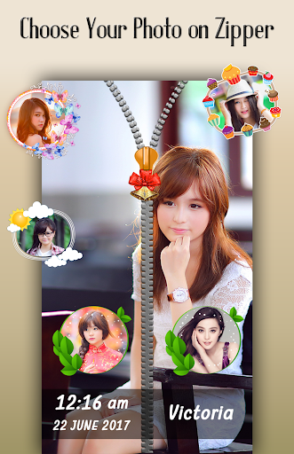 Best part of zipper lock screen is you can set couple photo on lock screen with awesome and creative objets. Even write your name on zipper lock screen. you can use it as couple zipper lock screen