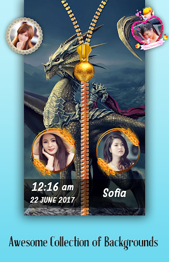 dragon is made and used as a decoration. dragon shines by reflection with many small flashes of brilliant light or to shine with strong emotion to be brilliantly attractive. It is a free zipper lock app for your quality android device. If you love the dragon shine, then you surely want to decorate your home screen with dragon zipper Lock Screen. Young girls and guys will really like it.