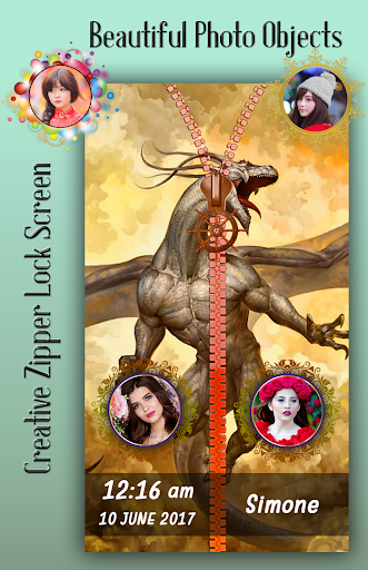 A simple zipper, you just have to drag it downwards to unzip the pretty dragon and your phone will be unlocked. Its a quick, simple and easy way to unlock your phone. dragon zipper Screen Lock includes cutest high definition graphics with user friendly interface. This zipper lock app doesn't require any password or pin code to unlock your smartphone.