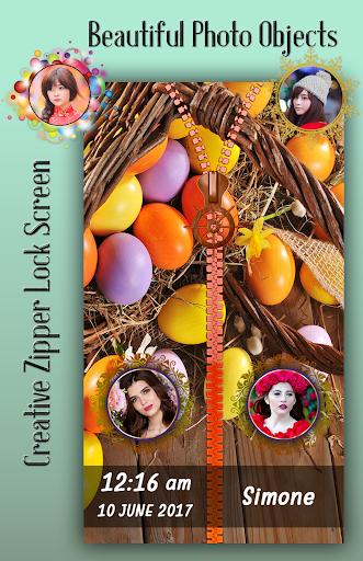 easter is made and used as a decoration. easter shines by reflection with many small flashes of brilliant light or to shine with strong emotion to be brilliantly attractive. It is a free zipper lock app for your quality android device. If you love the easter shine, then you surely want to decorate your home screen with easter zipper Lock Screen. Young girls and guys will really like it.