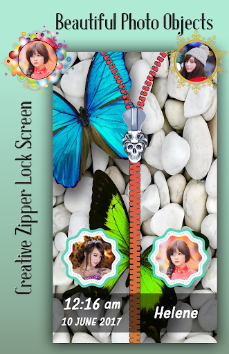 Best part of zipper lock screen is you can set couple photo on lock screen with awesome and creative objets. Even write your name on zipper lock screen. you can use it as couple zipper lock screen