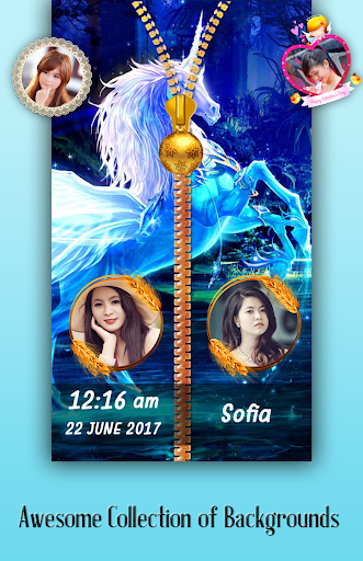 Best part of zipper lock screen is you can set couple photo on lock screen with awesome and creative objets. Even write your name on zipper lock screen. you can use it as couple zipper lock screen