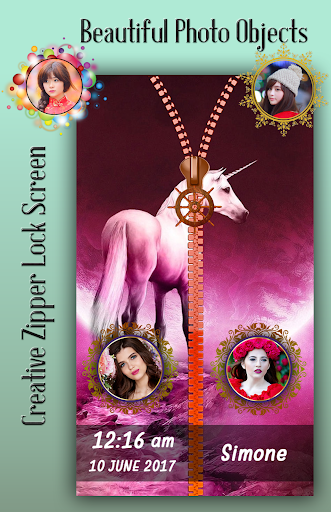 unicorn is made and used as a decoration. unicorn shines by reflection with many small flashes of brilliant light or to shine with strong emotion to be brilliantly attractive. It is a free zipper lock app for your quality android device. If you love the unicorn shine, then you surely want to decorate your home screen with unicorn zipper Lock Screen. Young girls and guys will really like it.