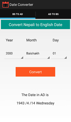 Simplest way to convert Nepali to English date and English to Nepali date.Please let us know if any error found in this app.