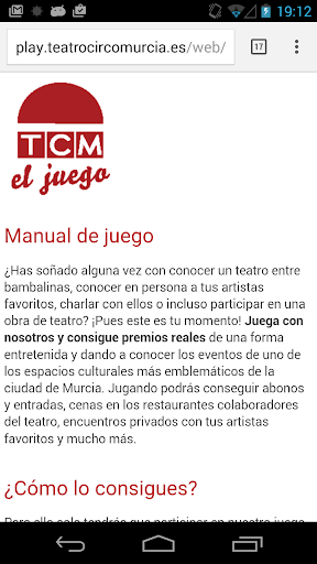 Descárgate la aplicación "TCM el juego" y juega con tu dispositivo móvil una forma entretenida y dando a conocer los eventos de uno de los espacios culturales más emblemáticos de la ciudad de Murcia: El Teatro Circo Murcia.
