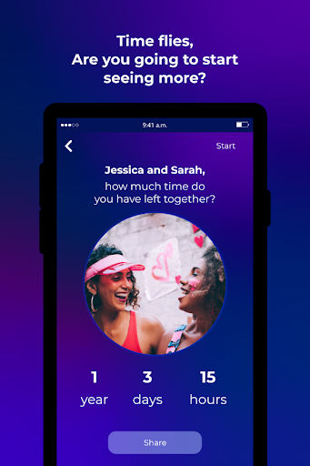 But Time Left is not just a tool to answer depressing questions - it's also a reminder to value the time you have with your loved ones and make the most of it. So, get excited about the result and start planning how you are going to enjoy the time you have left with your boyfriend, girlfriend, friend or family member. And don't forget to share the result with others!