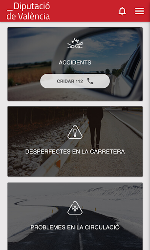 Accedeix directament al telèfon d'emergències 112 o envia una incidència que hages detectat durant el teu viatge en carretera. L'aplicació, que manté l'ús de GPS activat, permet filtrar el tipus d'incidència i realitzar o adjuntar una fotografía. No utilitzes l'APP mentres conduïxes.