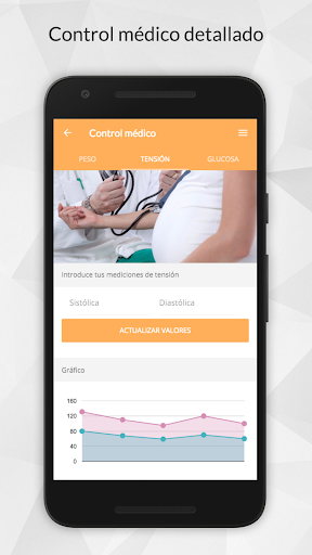 De manera autónoma, la paciente podrá registrar su peso, tensión y valores glucémicos. Dispondrá de detallados gráficos de control que garantizan una ganancia de peso saludable.