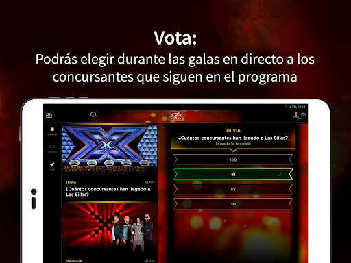 Tú decides quién gana el programa con tus votos en la aplicación oficial: lleva a uno de las categorías lideradas por Laura Pausini, Risto Mejide, Xavi Martínez y Fernando Montesinos a la victoria eligiendo durante las galas en directo a los concursantes que siguen en el programa. ¡Tienes hasta 5 votos gratis para apoyar a tus favoritos!