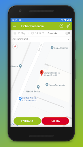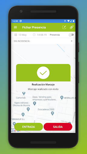 Con esta app podrá registrar las entradas y salidas de su jornada laboral, descansos, ausencias justificadas, ... identificando la posición geográfica desde la que se produce el registro.