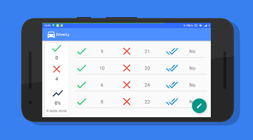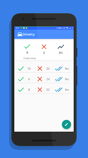 With DriverLy you can prepare yourself easily in order to get your driving license without any difficulty. DriverLy offers you random generated tests in order to make your experience better.