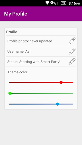Smart Party is a meeting room of nearby users based on VoIP. It means that you can discover users in your same WLAN... and call them!