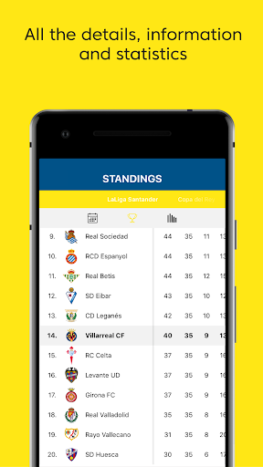 ✔ Calendar, live results and classification: Check all the key dates and timetables on the official calendar for all competitions for Villarreal CF: Liga Santander and Copa del Rey. Get the live results from every game on match day, with the league table fully updated at all times. Stay in touch every second with what is happening in every game with live updating information.