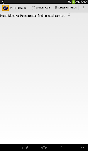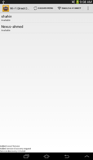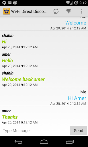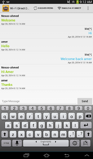WiFi Direct Group Chat allows multiple devices to communicate (chat) together without the need for a mobile data connection or a Wi-Fi access point. All you need is to have a device with Wi-Fi Direct support, which is available in most new devices now. Android Jelly Beans is required for this app to work, as it uses p2p service discovery which is not available for earlier devices. Once you opened the app press Discover Peers and you should receive a list of current user who are running the app. Connect to one of them to form a group chat. Any subsequent connection to the group will be announced to the devices already in chat. The newly connected device, can them communicate with all the devices and they can communicate with him.
