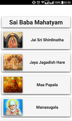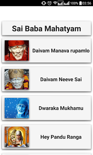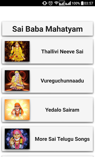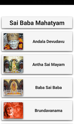 Sai Baby Mahatyam English Songs App zawiera SHIRIDI SAI BABA Divotional piosenki.Bababati Getalu lub Sai Baba Bhakti Paatalu.