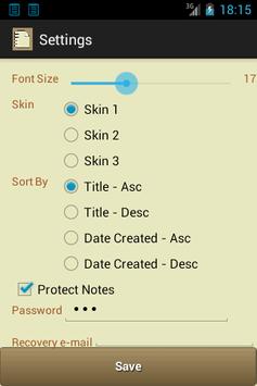 - Sort notes according to their titles or entry date (Ascending or descending).