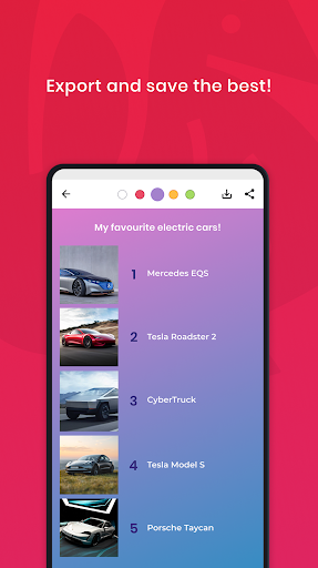 With 5XO, you can create top5 tier lists and share them with other people! 5XO is the central spot for people who seek to explore the best of any topic. Upload a list about the best books you've read, the cutest animals you've seen or the best series you've watched! With the application you can export your lists and share them anywhere you want!