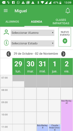 • 온라인 의제 : 앱에 통합 된 의제를 통해 교사는 모든 수업과 시험을 관리 할 수 있습니다.행정에서 예약 된 것을 확인하고 확인하거나 취소하지 않고도 수업을 예약 할 수 있습니다.지도 (Google지도).이런 식으로, 학생은 자신이하는 경로를 검토하고 자신이 실패를 저지른 곳을 확인할 수 있습니다 (교사가 수업 중에 실패를 평가하면 오류가 기하학적이기 때문에).