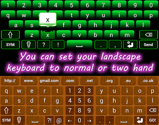 settings the format of the keyboard when is on landscape orientation, either to normal keyboard or the two hand keyboard format.