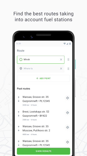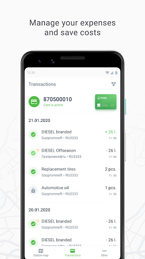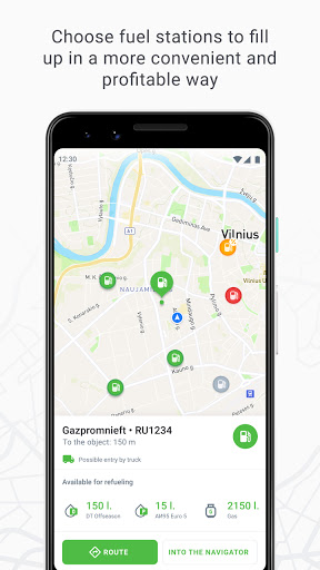 Getting behind the wheel, you will never have to think where to refuel or how many liters are left on your fuel card. In E100 Mobile you can already find: