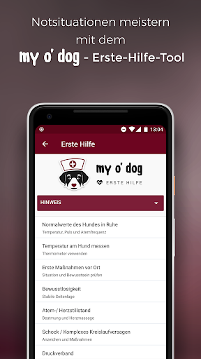 Zudem bietet my o‘ dog ein Erste-Hilfe-am-Hund-Tool an. Dieses Tool hilft dir in Notsituationen richtig zu reagieren und es gibt dir wertvolle Tipps mit an die Hand. Und das ganze völlig kostenlos!