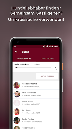Mit einer Suchfunktion kannst du dir die Profile von Hund und Haltern aus deinem Umkreis anschauen.