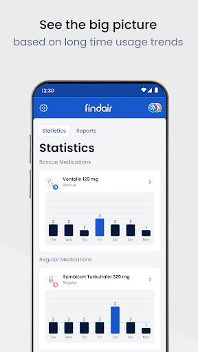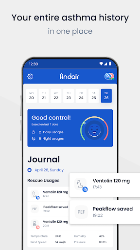 FindAir application is a smart asthma diary for your smartphone. No more manually filling in data every time you use your medicine. With FindAir, you can easily add all information with single clicks and monitor your progress to better understand your asthma.
