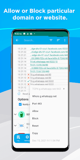 • Block all or particular apps internet access.