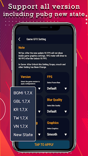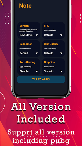 -You can select the game like pubg , bgmi , ff , pubg new state and all other game select and select game version and change functionality like resolution ,graphics.