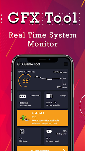 In Pro GFX Tool for all Game app control all mobile graphics and speed.app are show a ram and used ram and battery performance display.