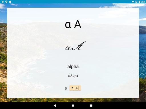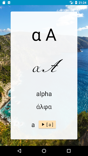 Learn with flashcards to memorize all the letters of an alphabet. Each flashcard contains the symbol of the letter, both typed and handwritten, its English name, its original name and how to pronounce the sound of the letter.