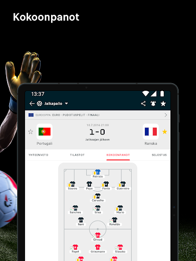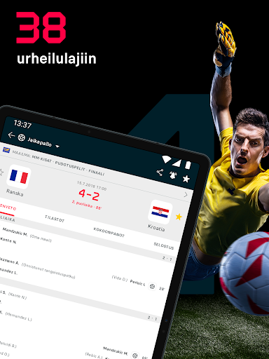 • ILMOITUKSET JA HÄLYTYKSET: Lopputulokset, kokoonpanotiedot, maalit - et missaa niistä mitään. Valitse haluamasi ottelut ja odota, että laitteesi lähettää sinulle tiedon.
