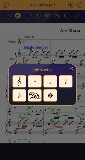 - adding pre-defined musical marks & symbols;