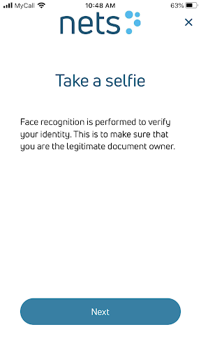 As a first step, you will digitally scan your passport (or similar ID document - such as driving license, or residence card) by using the camera on your mobile device. As a second step, you will take a selfie to validate that you are the same person as in the picture scanned from the document. Once a match is established, the app will automatically close or you will be asked to close the app.