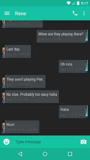 This is a card ui styled theme with a slight twist to it. This Sliver Turq theme is for the newly released texting app called Evolve SMS.